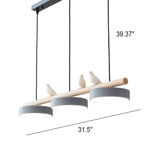 Scandinavian Round Resin Bird Wood Linear Island LED Chandelier Light