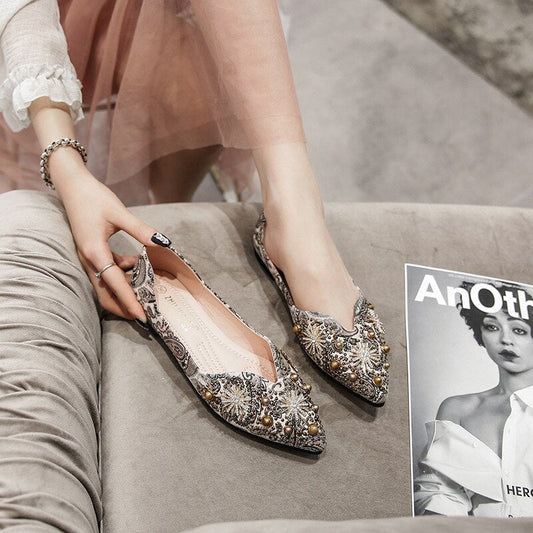 Aureliana Elegant Rhinestone Flowers Flat Shoes